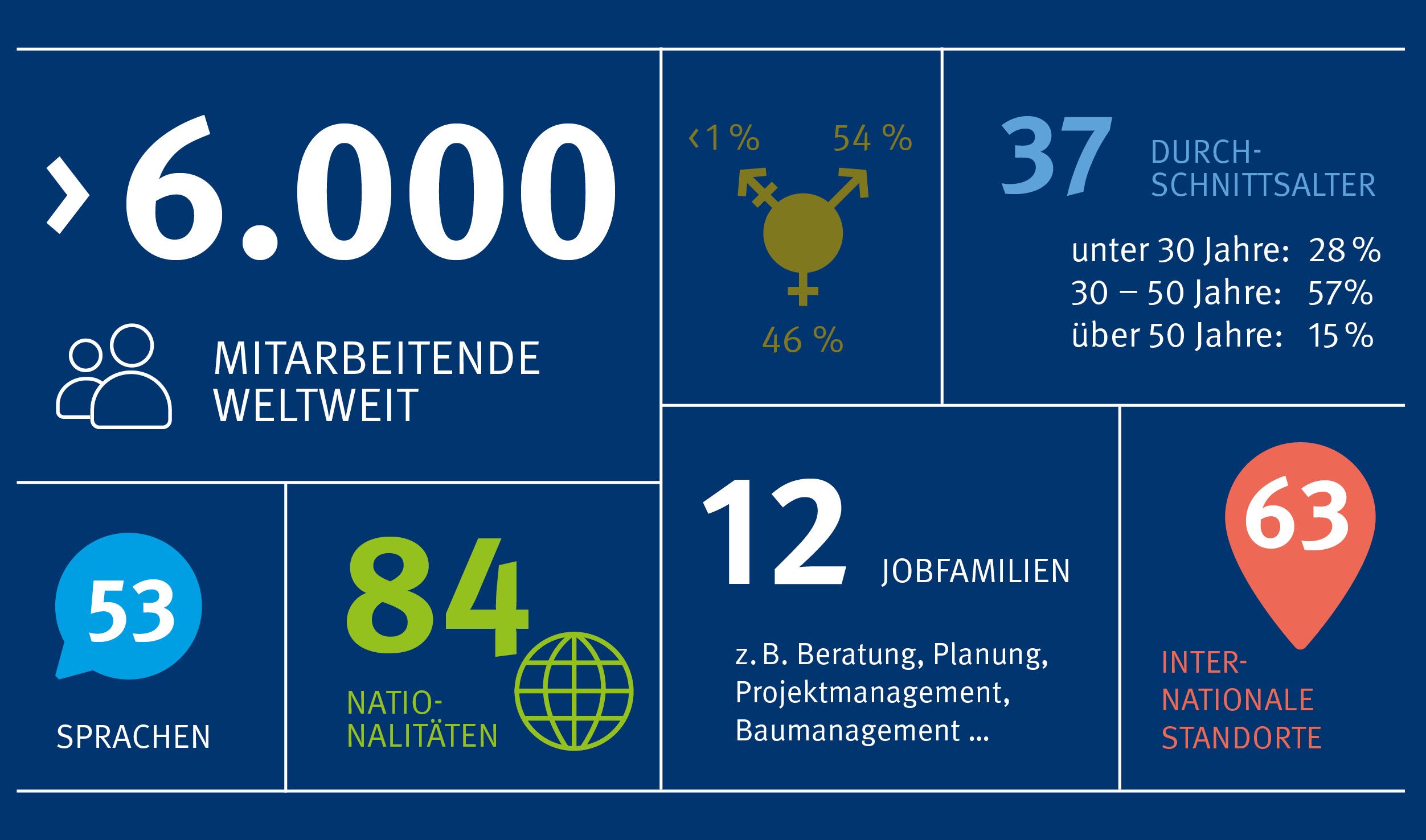 Als Nachhaltigkeitspionier und Digitalisierungstreiber in den Branchen Real Estate, Infrastructure und Industry stehen wir jeden Morgen auf, um eine lebenswerte Zukunft für kommende Generationen zu gestalten. Für uns bedeutet das, scheinbare Gegensätze zu vereinen: Tradition und Zukunft, Analoges und Digitales, Effizienz und Wohlbefinden. Dafür arbeiten über 6.000 Mitarbeiterinnen und Mitarbeiter an 63 Standorten weltweit. In interdisziplinären Teams finden sie nachhaltige, innovative und wirtschaftliche Lösungen für Immobilien, Industrie, Energie und Infrastruktur – und das in rund 6.500 Projekten.